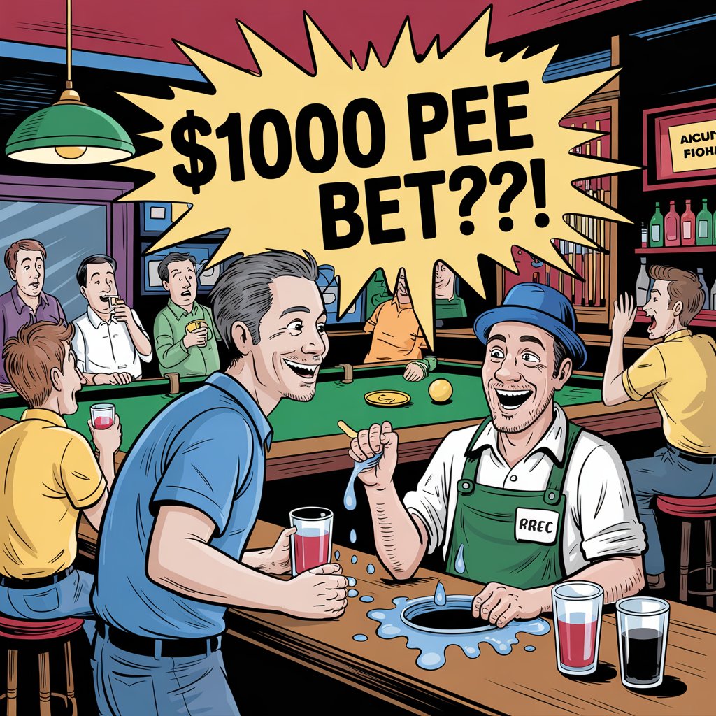The bartender bursts out laughing. “Ha! You owe me $100!” The guy shrugs, walks over to a guy at the pool table, they laugh, and some cash exchanges hands.